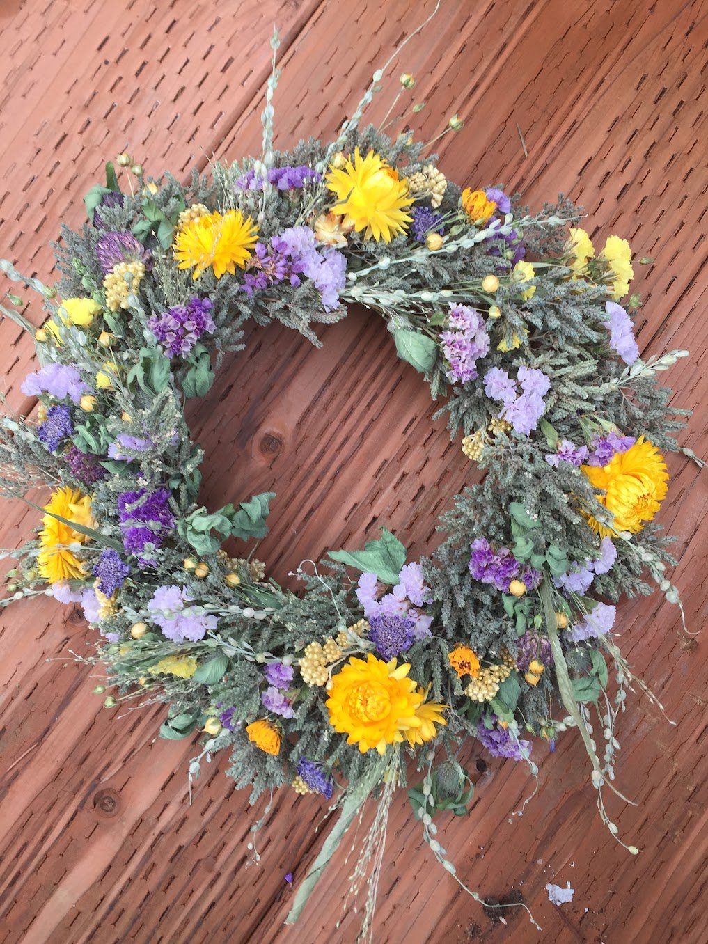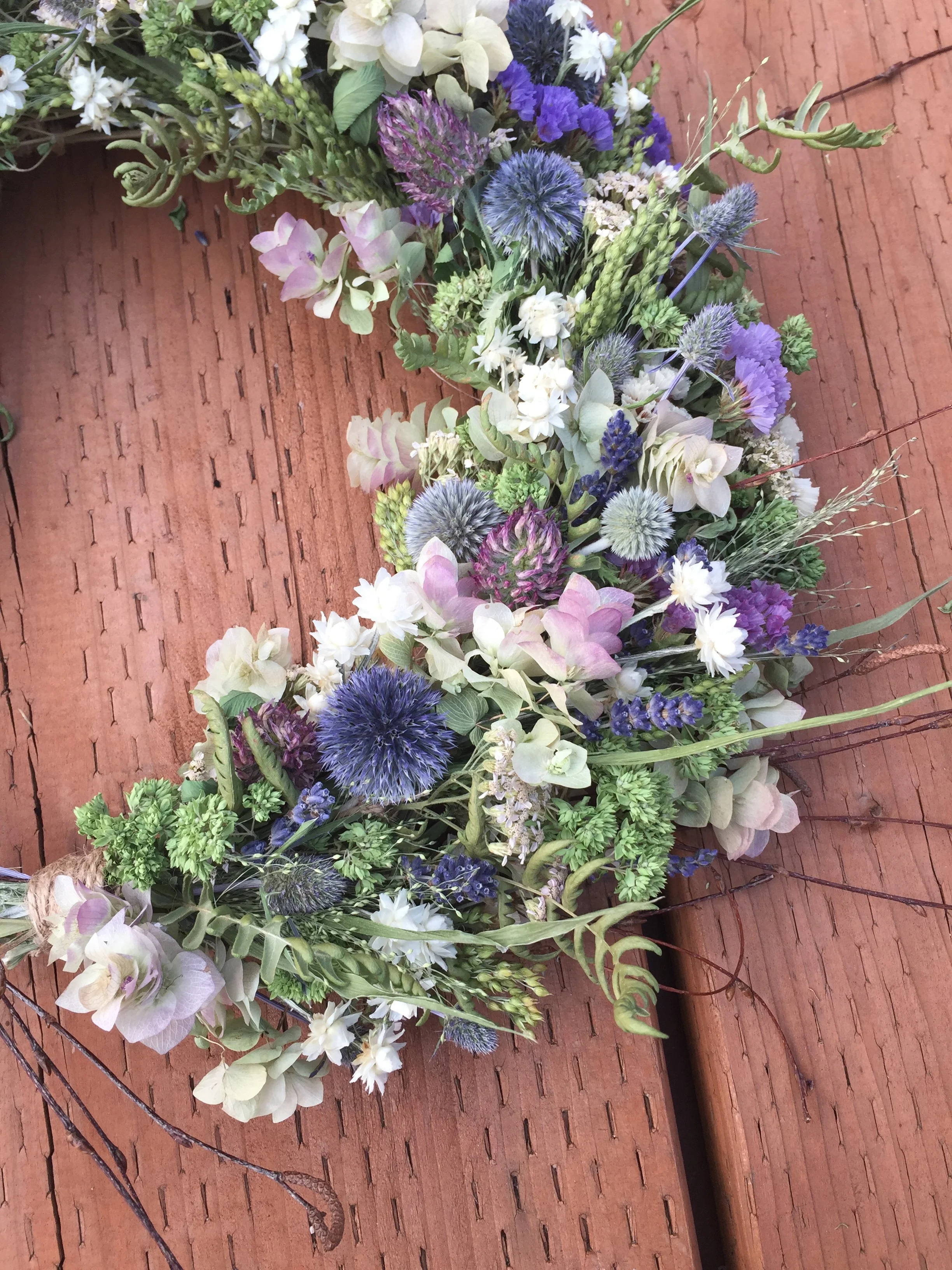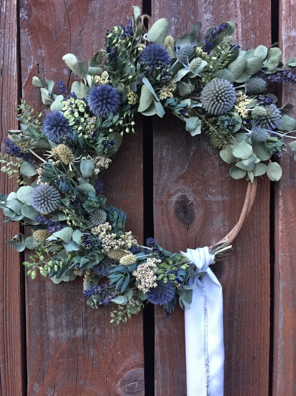 "I look forward to new wreaths every season - dried flowers in spring and summer, and beautiful evergreens in winter. Each piece is thoughtfully crafted with fully compostable materials, and many of the flowers are ones she's grown and dried herself. Her wreaths last wonderfully long, especially indoors, and bring such natural beauty into my home. I'm always impressed by the care, creativity, and sustainability behind her work."